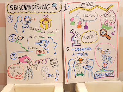 Presentó un gran panel de unos 8 metros en los que representaba un gran Mind Mapping con las formulas y recorridos de su modelo de negocio. Otra representación de pizarrasobre el fondo naranja que me pareció reseñable por el tamaño. Entre todos los colorines a veces exagerados de los stands, este resultaba un poco de relax para la vista a veces cansada de tanta llamada de atención. Con esas dimensiones de stand apetecía pararse un poco a descansar la cabeza.